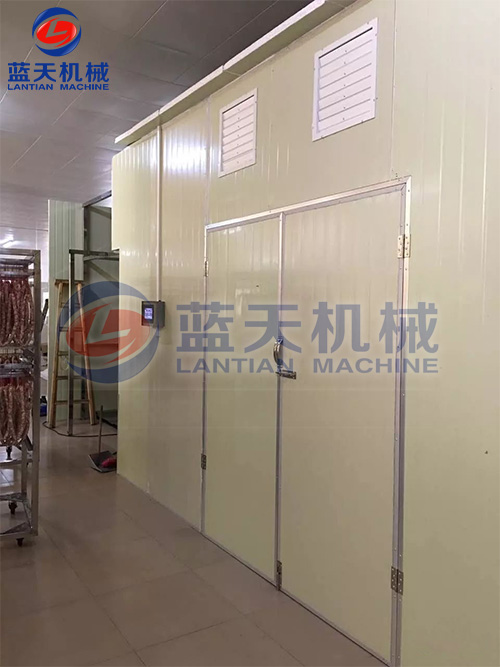 1、等速干燥階段。歷時(shí)5到6個(gè)小時(shí),在物料裝入烘干房后兩小時(shí)內(nèi),溫度快速升到60℃~65℃,不用排濕。這一過(guò)程主要是起到一個(gè)發(fā)酵的過(guò)程,控制肉不變色變味。預(yù)熱時(shí)間后,調(diào)節(jié)溫度到45℃~50℃。