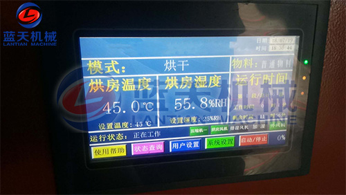 設置烘干參數(shù):桑葚是高糖分、高水分含量的漿果,較長果形是由一個一個小果囊的形狀組成,水分難以出來,所以需要較長的時間。同時烘干溫度又不能太高,溫度太高,就容易影響花青素的有效含量。烘干第一階段溫升一小時,不排濕,烘干模式,讓烘干房上升至50度左右。第二階段設為烘干+排濕模式,目標濕度為60%,目標溫度設為55度。第三、第四階段每一階段上升5度,目標濕度下降10%,讓烘干房不斷排濕。最終一個階段目標濕度設為15%左右。如果條件許可,可以考慮在第四階段末了,停機靜置一段時間再復烘,這樣果干內部的水份滲出后被復烘的熱量加熱揮發(fā),果干果形更好,同時總體能效更好。