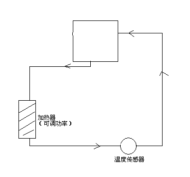 油在如上一個回路中流動(流量是可設置的,實際應用中可能為不同的值),通過一個電加熱器(可調(diào)功率)加熱,流出的管路上有個溫度計,希望這個管路溫度維持在設定值(30~70攝氏度之間某個設定值。)