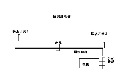 當運動到1時,遇到接近開關,觸發繼電器改變正負電從而再改變電機的轉向,改變物體再由1向2運動.
