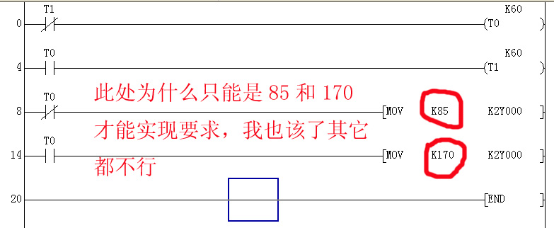 MOV  K85 K2Y0 的意思是把十進制常數85送入YO~Y7輸出繼電器所在的地址里