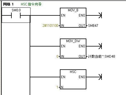 2.想要讀取HSC0的當(dāng)前值可以在程序里直接雙字尋址HC0,也可以用MOV_DW指令傳送到一個雙字寄存器地址;