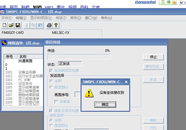 三菱觸摸屏F940GOT-LWD-E,為什么上載程序和下載程序時顯示“沒有全體接收” 應該怎么解決,誰能幫幫我?