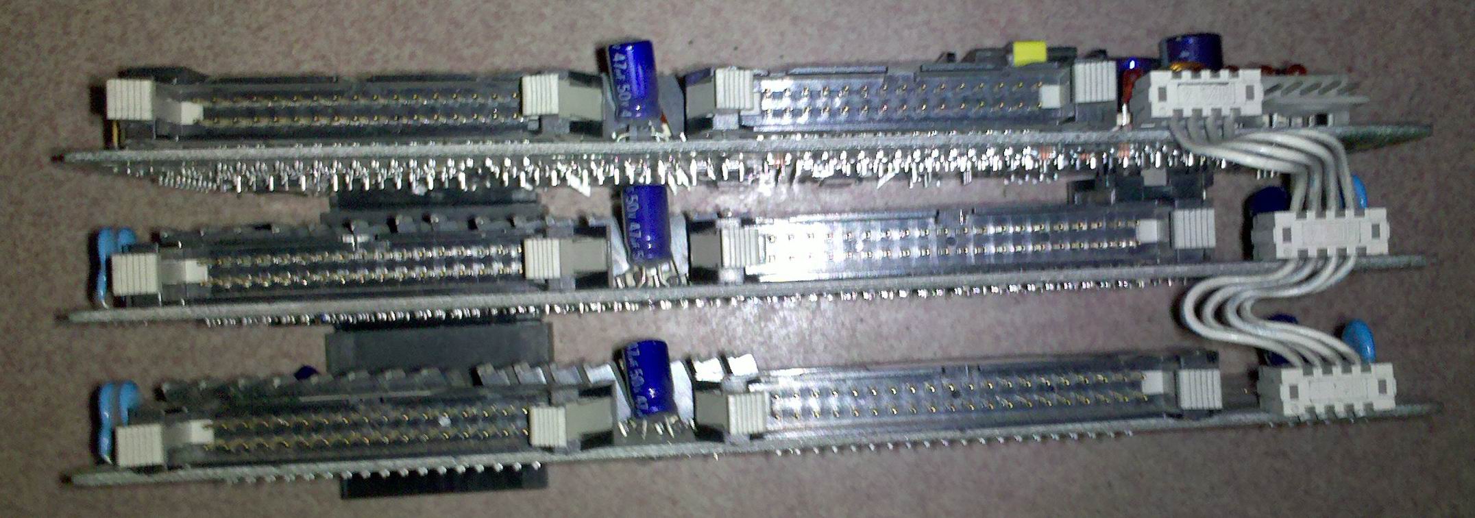圖片夠清晰不!!三層最上面的就是plc的核心所在了 下面2個估計是輸入輸出拓展模塊。 這個plc應該有年頭了吧