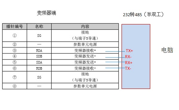 我就是這樣接的線,接了4根,現(xiàn)在就是變頻器可以接受到代碼并且運行,總是不返回代碼回來,到底哪里的問題呢?問題出在哪?