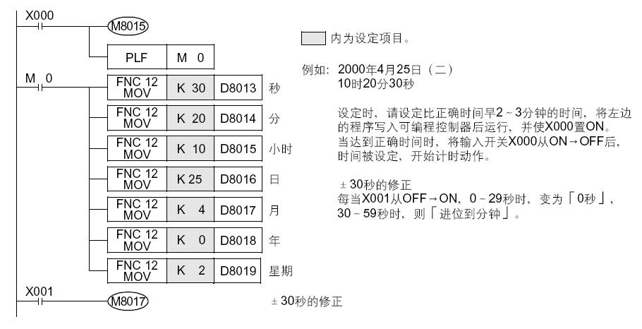 D8018設置[MOV K8 D8018]傳入PLC中就變成了02年。秒、分、時、日、月、星期都正常。