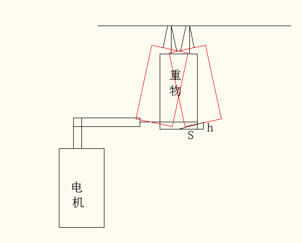 一個電機拉動重物搖擺的機構。s 它的水平位移 h 它的垂直位移量