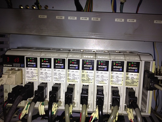 還有一個8軸聯動MR-JI10B伺服器,帶基板通訊,PLC也是Q系列的,還有173的定位模塊,具體看圖片吧,這些東西也不是很熟悉呀,因為他們太穩定了,還沒壞過。順便說下,日本進口設備,我們公司大把3軸,4軸.8軸聯動的數控設備,IAI  YAMAHA 安川機器人,都有。還就是沒有發那科,很想見識下。