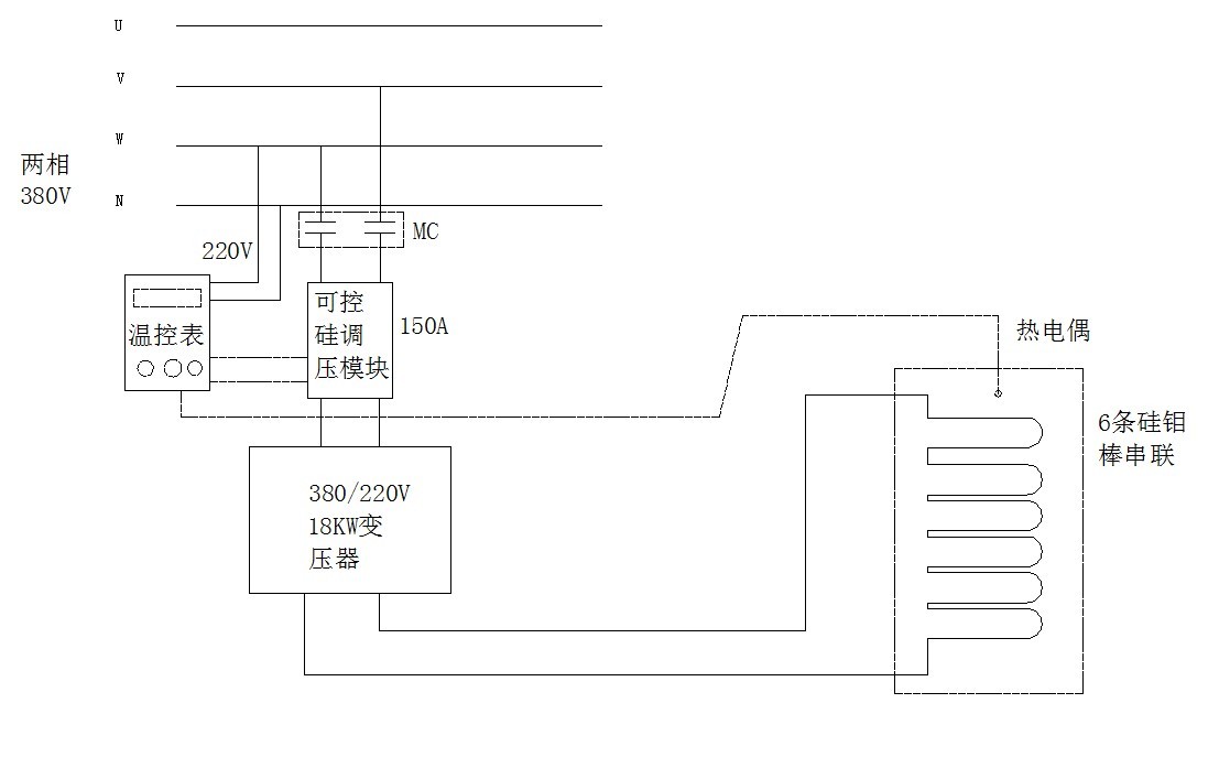 這個辦法是不行的,硅鉬棒冷態的電阻是0,相當于短路的,這樣接調壓模塊一通電就掛了呀。