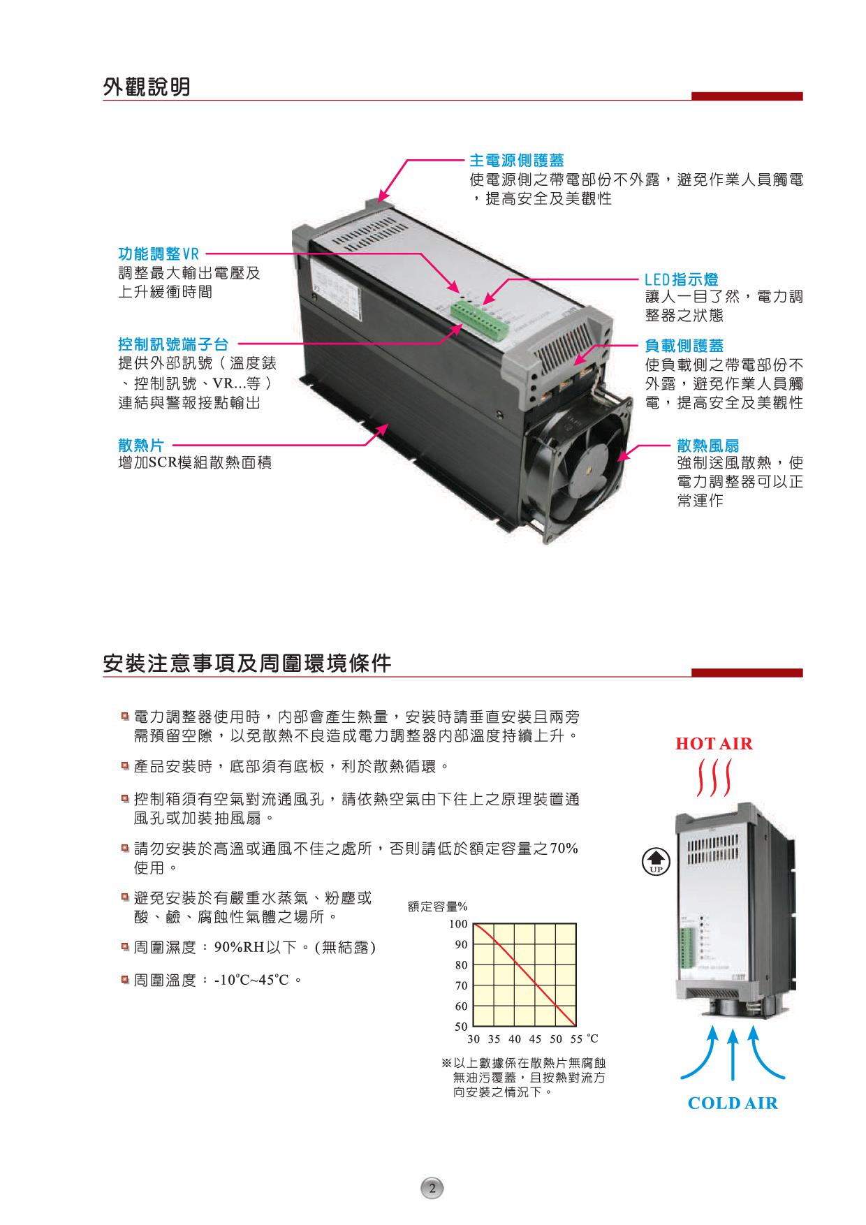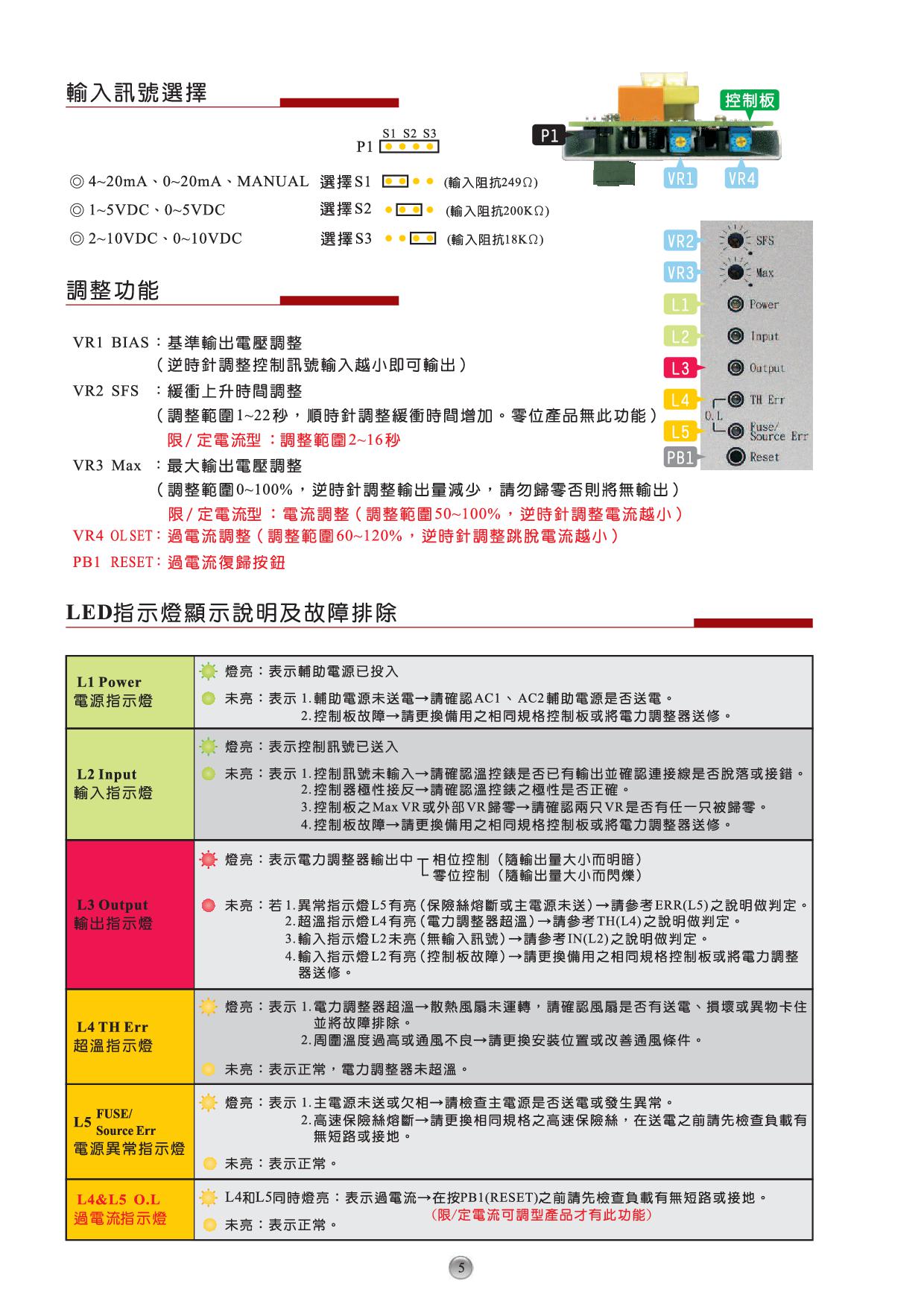 ※具有保險絲熔斷、電源異常、SCR超溫指示及異常接點輸出。