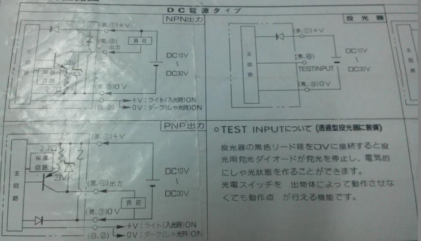白線接+V時有光照射時輸出。接0V時擋光時輸出,(黑)TESTINPUT是當黑線接0V時發光二極管停止發光。