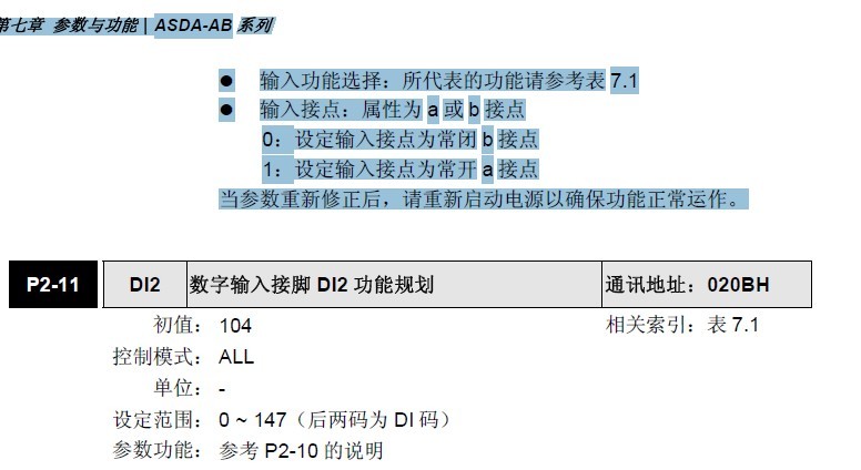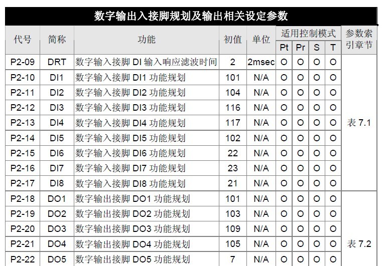 還有在定義輸入腳的時(shí)候,比如OD1對(duì)應(yīng)的是CN1插頭第七腳,它需要來(lái)設(shè)置參數(shù),對(duì)應(yīng)什么樣的功能,說(shuō)什么輸入功能選擇見(jiàn)表7.2,表7,2在哪里,找不到