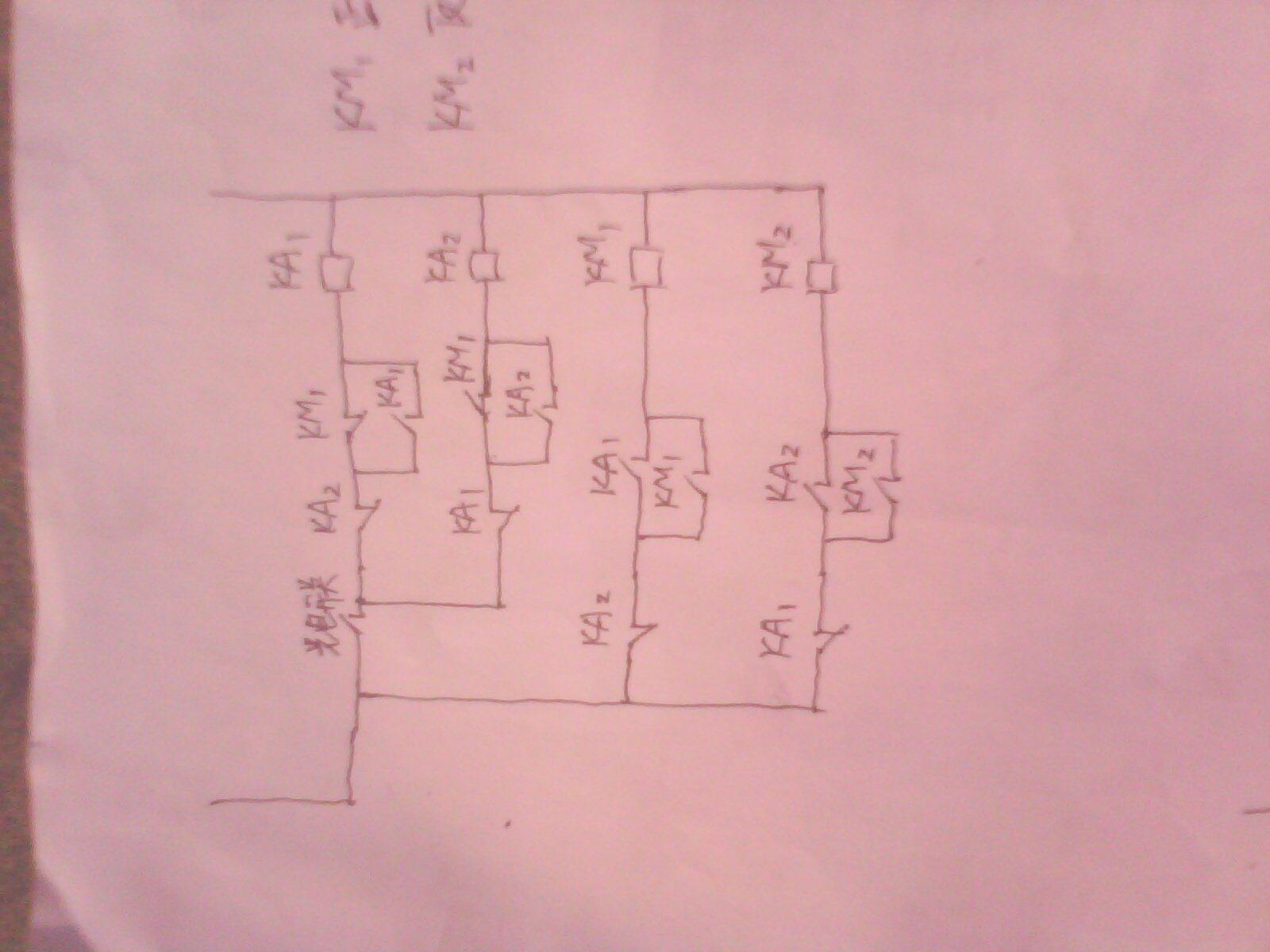 就是一個單按扭啟動和停止的電路,常開正轉常閉反轉。再加一個主電路的接觸器就可以了。按扭就是那個光電開關