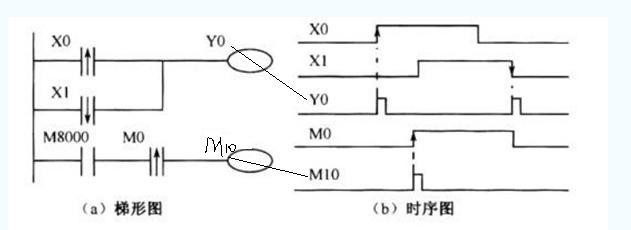 應該不難吧,就是X0的上升沿和X1的下降沿輸出Y0,然后其他的就是這樣,上升沿和下降的問題,沒有學過三菱的,但是差不多看的懂,M8000好像是內部脈沖吧