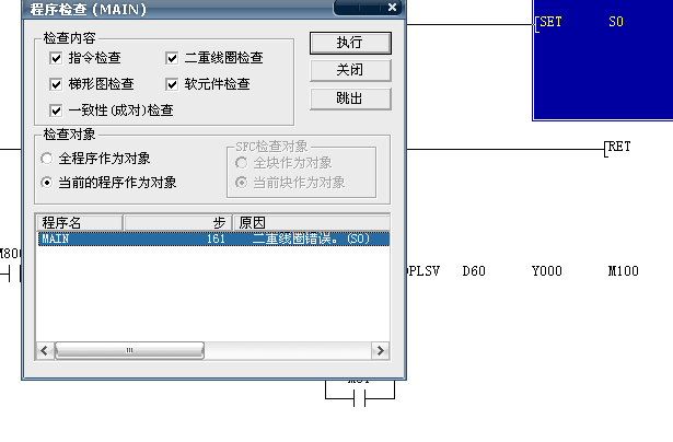 在一份三菱的資料上顯示三菱fx系列的plc可以支持雙線圈輸出!程序校驗會有提示但使用起來沒有問題!