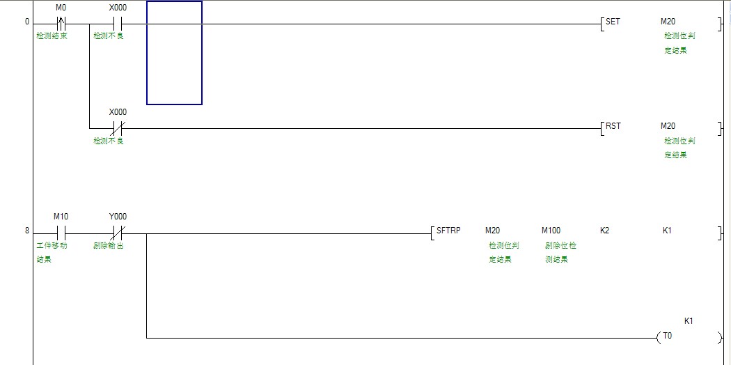 用不良信號在檢測工位檢測結束時置位m位,再用SFTR指令把不良信號傳遞到下一工位