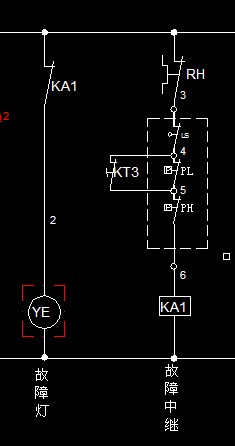 要看KA1為什么動作!可在YE上并一個繼電器,利用這繼電器另開一路并自鎖報警,并斷開要保護的電路。