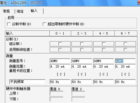 7KF02模塊的側(cè)面的量程卡打到C位置,4線電流輸入模式,我試著給1通電加入電流,通道顯示16#7FFF,無論電流怎么變化,通道的數(shù)據(jù)一直是7FFF,其他通道有變化,這是怎么回事呢,通道壞了,我手里有2個模塊都是這樣的現(xiàn)象,難道2個模塊都是1通道不好?是不是我設(shè)置的問題?