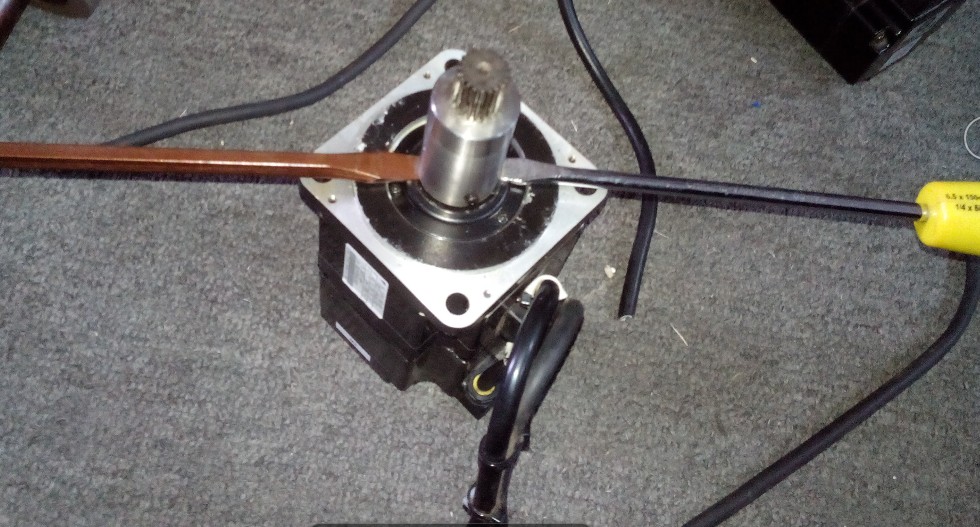 伺服馬達上面裝減速機 減速機的后半部分已拿出 ,減速機軸無法取出,空間有限普通拉馬夠不著 ,這種是400W的馬達 ,200W 100W均能用如圖所示的方法用兩把螺絲批翹出,誰有好方法分享下 謝謝