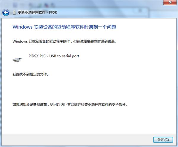 松下FP0RPLC安裝驅動 出現系統找不到指定的文件,win7 32系統可以正常安裝,因工作需要更換win7 64位系統時出現上面的警告,以為系統沒有裝好,重裝后還是一樣。        謝謝