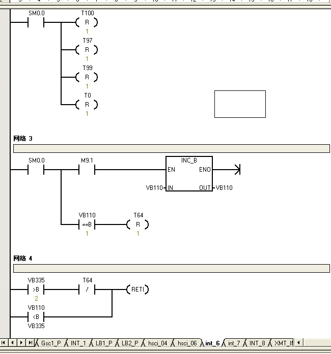 上面是主程序,下面是子程序,子程序是I0.0上升沿中斷