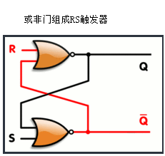 與非門組成RS觸發器、或非門組成RS觸發器。