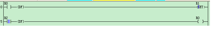 由于R2后面有一個DF所以R0 ON一個掃描周期,是不是也就是ON 5行以下的語句啊