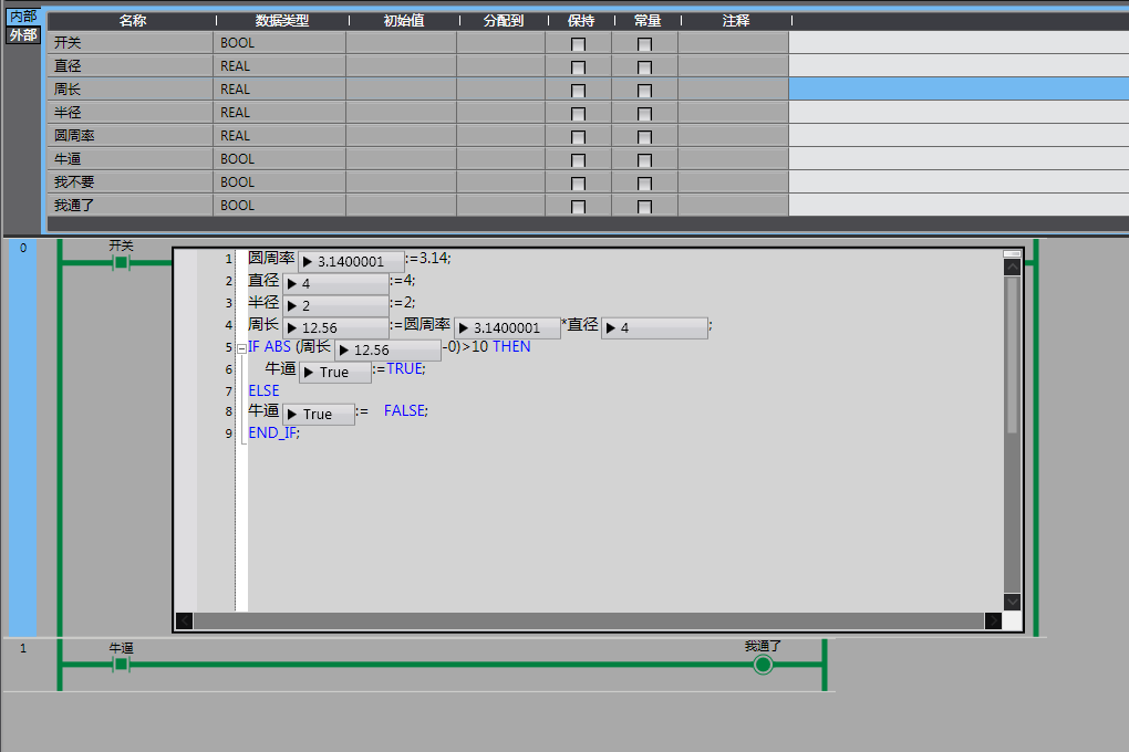 這還不是ST語言是什么。。。很正常啊,上面變量表,下面寫語句。現在很多日系中高端PLC都有這些了。大差不差。功能都差不多。。。