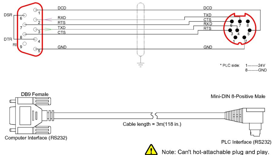 那個頭你買不到的,和三菱的類似(Mini din 8P)但缺口不一樣。用三菱的頭改的話容易把編程口拔壞,插拔都很費勁