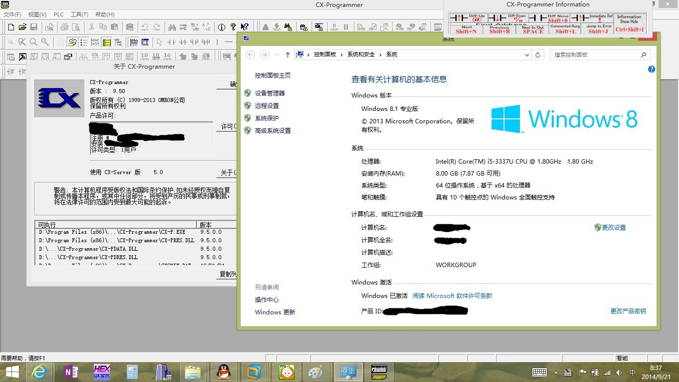 確認你的系統是否是正版?CX-ONE的版本是否支持WIN8.1;我最近入手了一臺LENOVO T440P WIN8.1 64BIT安裝了CX-ONE4.30一切正常