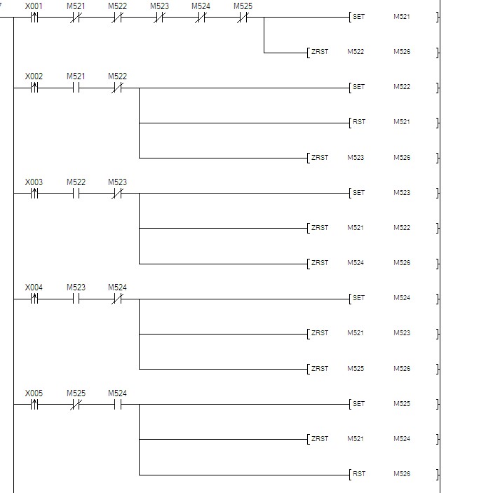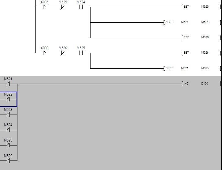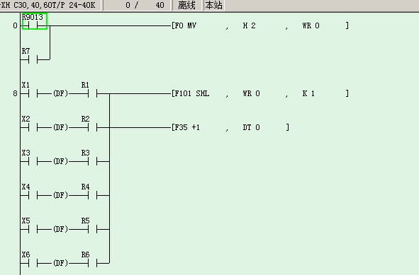 X1----X6依次對應6個接近開關用來計數,要求X1-X6必須嚴格按照1-6的順序輪流計數,X1--X2--X3--X4--X5--X6--X1--X2--X3--X4..................反復循環,計數值保存在D100里面,如果接近開關未按1-6順序輪流計數,順序錯亂要求輸出出錯信號停止主機,用比較指令來判斷位X1---X6相鄰兩個位的狀態但邏輯關系比較復雜請教高手有沒有比較簡便的方法。
