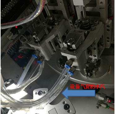 如上圖所示,用的是SMT AF-40-03D-A的三聯體組建,但是設備中的某根氣管總是存在水汽,當時懷疑三聯體組建的原因,后面想到如果是三聯體組建,就不僅僅是一根氣管存在水汽,所以就否定掉了。但是事實卻是這跟氣管總是存在水汽,所以一直想不懂,求大神們來指教下。