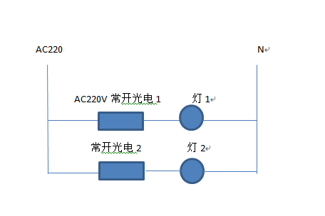兩個光電開關都感應了燈怎會不亮,按照上圖只要感應了燈就會亮,兩個光電不要靠一起,離遠點