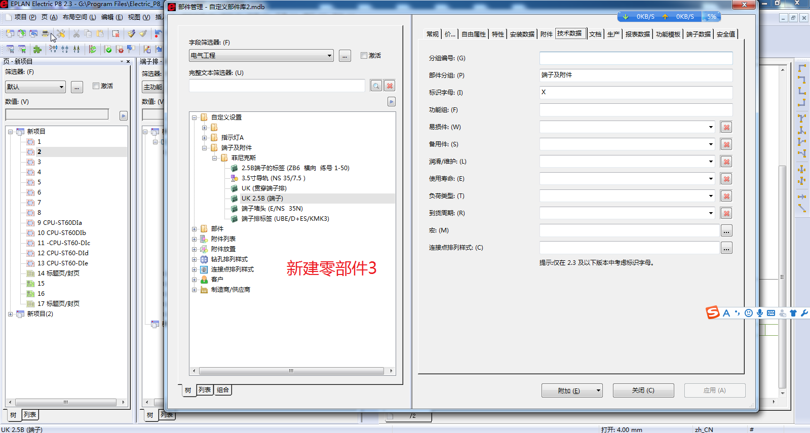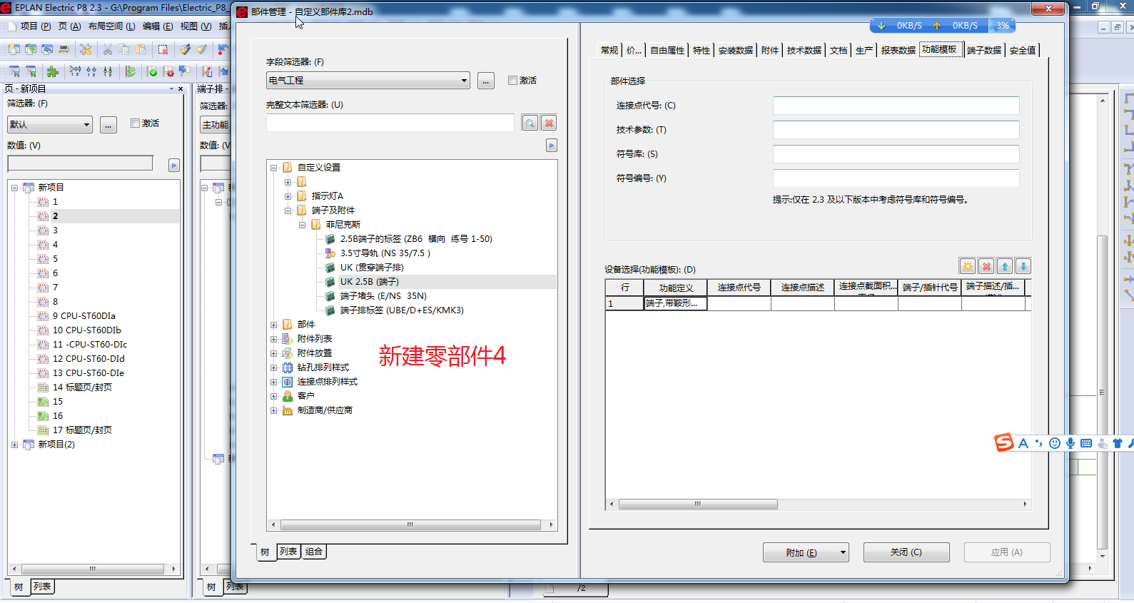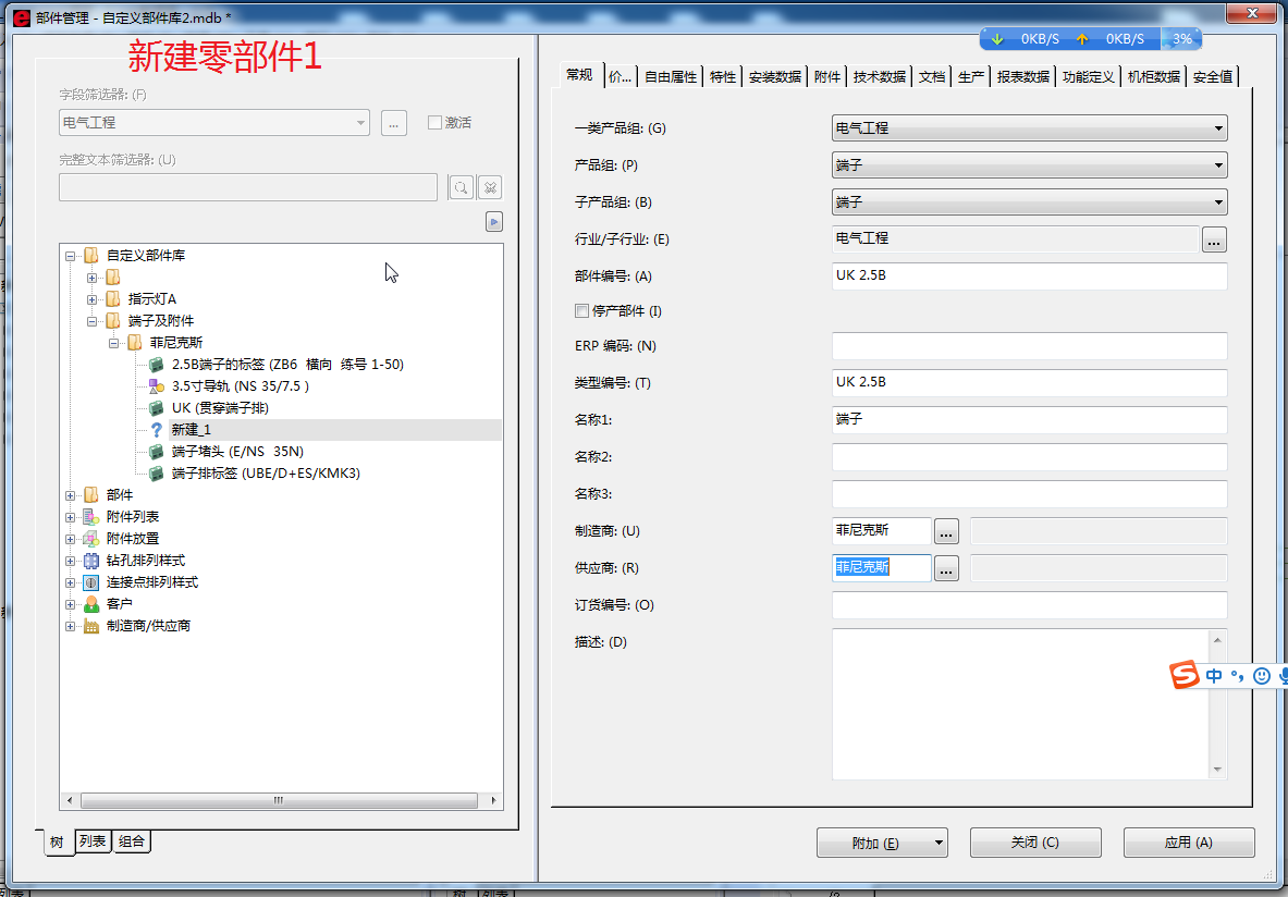 部件里面默認是我建立的端子部件,我刪除它(因為我新建的端子有一些其他的附件,比如堵頭,我想在設備選擇中選擇部件的附件)