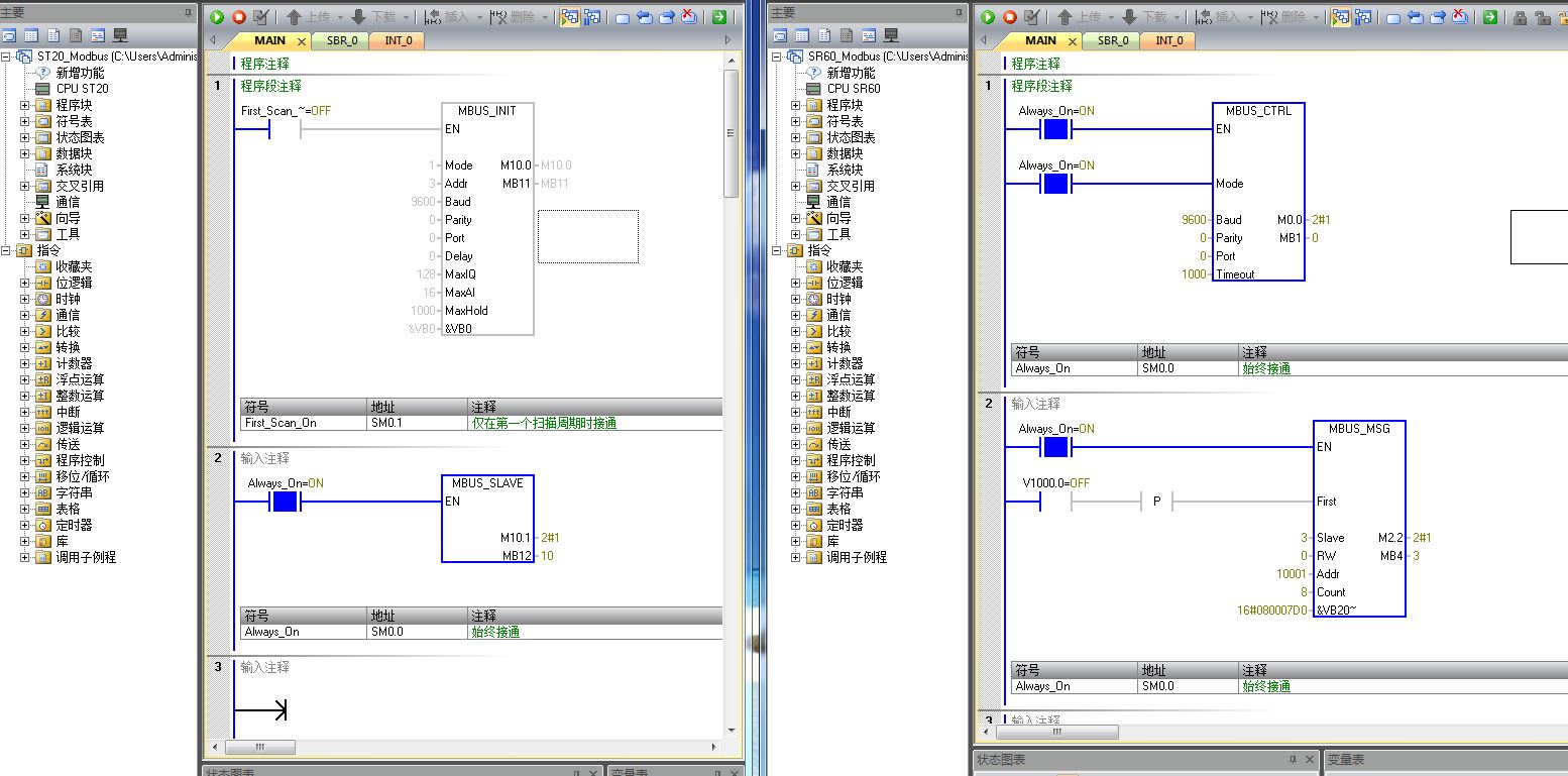 兩個smart200做modbus通信,主站發送MSG指令時,返回是0,無錯誤,發送后就顯示3,通信超時。