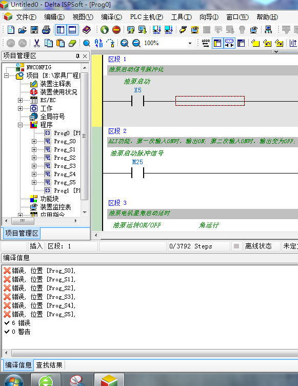 最近接觸到一個臺達的ES系列的32點的PLC,上傳上來的程序,啥也不動,直接點編譯,,提示我錯誤,附件里是我截屏的圖,,,有懂臺達的朋友,幫忙看看,,,我第一次搞臺達這個,感覺,使用上,不如大品牌用著順手,,,,呵呵,,可能是我用三菱用習慣了吧,,,嘿嘿,,,請大家?guī)兔Γx謝
