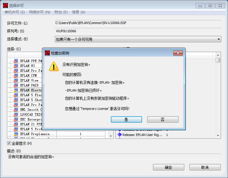 eplan沒有識別加密狗