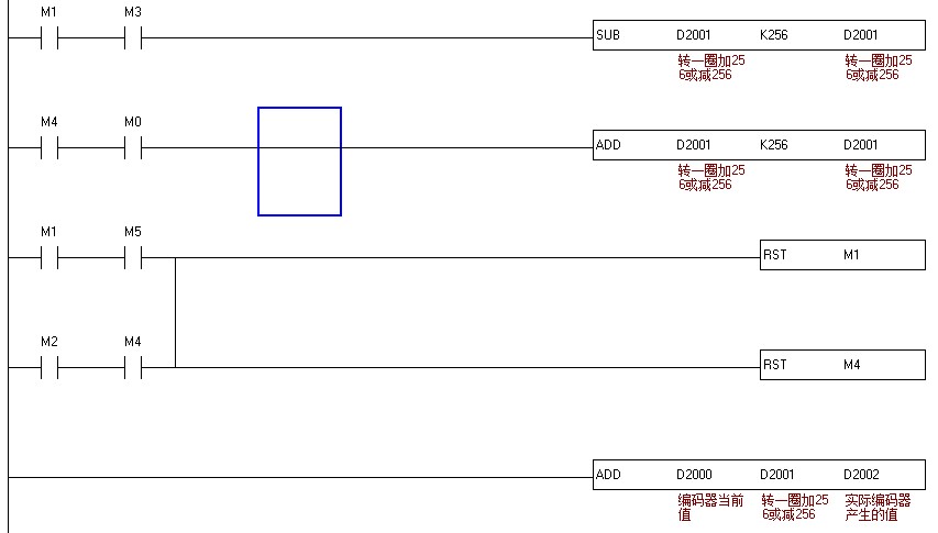 以前使用三菱的時候,直接讀取C251的數值,然后換成成距離。C251過零之后應該是繼續減計數變成負值。現在手頭有個工控板,防三菱的那種。他的C251是循環計數的,當C251超過65535的時,又繼續從0開始計數。當減計數超過0的時候,在繼續從65535開始減計數。編碼器是增量編碼器