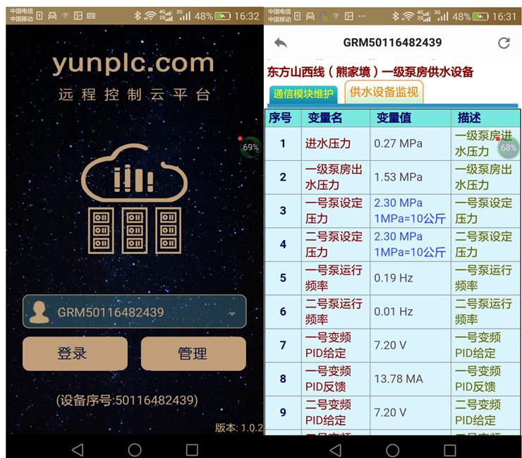 接下來GRM500模塊插上手機卡,待模塊數管碼顯示:4- ,表明模塊已上線。此時拿出手機、此時就可以看到自己做的PLC 手機APP的內容如下圖