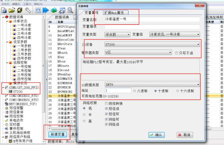 接下來新建變量,關聯PLC的寄存器地址如下圖