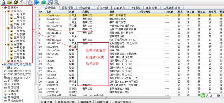 所有要在手機APP里顯示的變量建好后,下載到GRM500模塊里