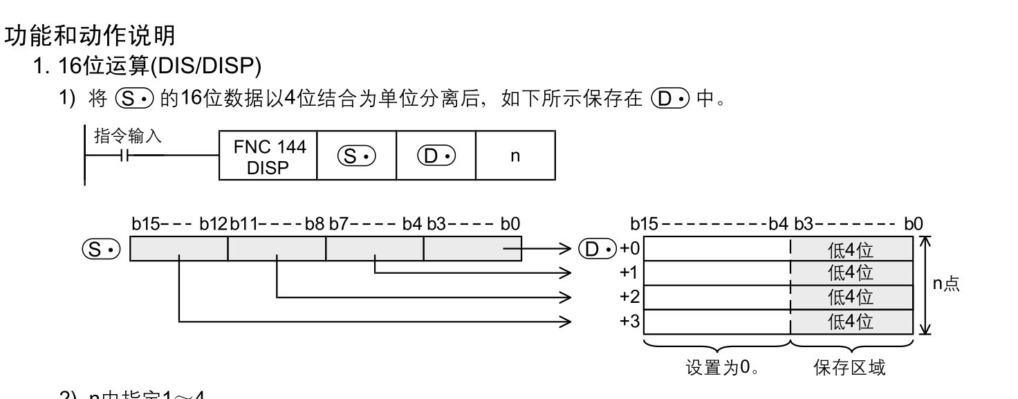 你去查一下對應PLC的型號的輸出處理部分的指令 這個是三菱FX3U的手冊查到的16位數據4位分離指令