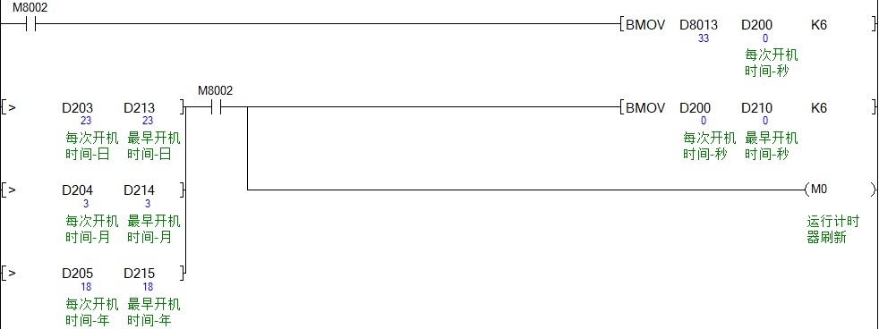 計算設備一天運行多少時間  寫個計時程序就可以了,     一天24個小時  計一天運行的時間, 那邊到了0點的時候需要保持  昨天做了個幾個小時,    但是問題來了如果用系統時間  剛好到0點PLC斷電,