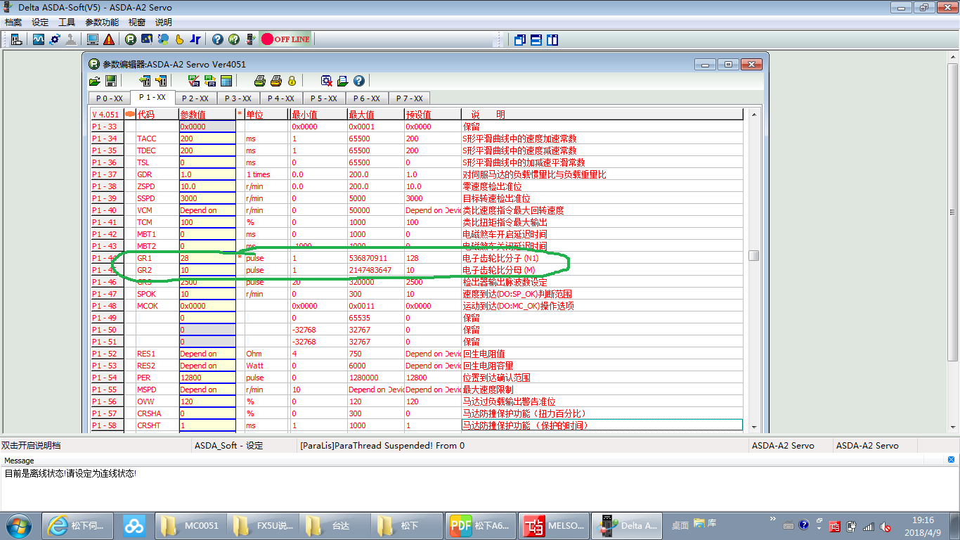 PLC是5U的,電機是臺達A2,然后減速比是28,。如圖,我在FX5U中設置機械系統,然后在指令中指定速度為K500,也就是對應的500cm/min,如何在臺達的控制器上設定參數來使電機實際走的就是500cm/min?是我圈起來的哪個電子齒輪比嗎?還是設置什么其他參數?麻煩各位了!