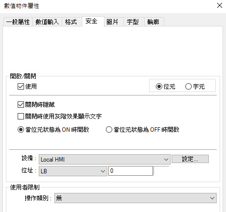 這樣可以嗎,輸入密碼後讓 LB0 ON,就可以設定,LB0 OFF不能設定也看不見,你去按他也不會有反應
