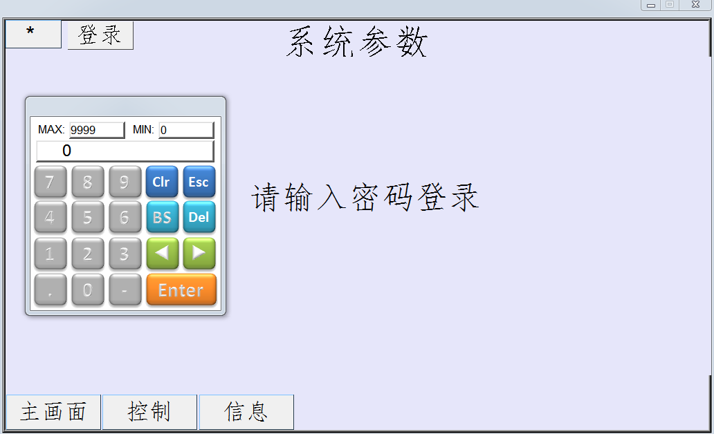 就是設置一個密碼登錄,在沒輸入密碼時我們不能看見位狀態設置元件覆蓋的參數設置,登錄密碼后我們讓位狀態設置元件消失,進行參數設置