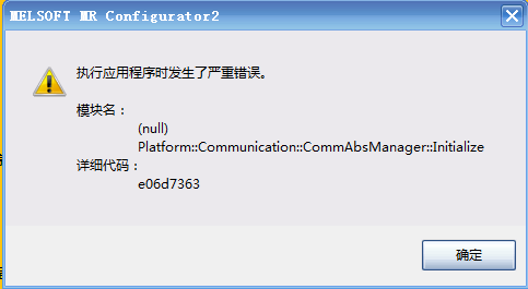 三菱伺服設置軟件開啟錯誤 e06d7363,幫忙看下