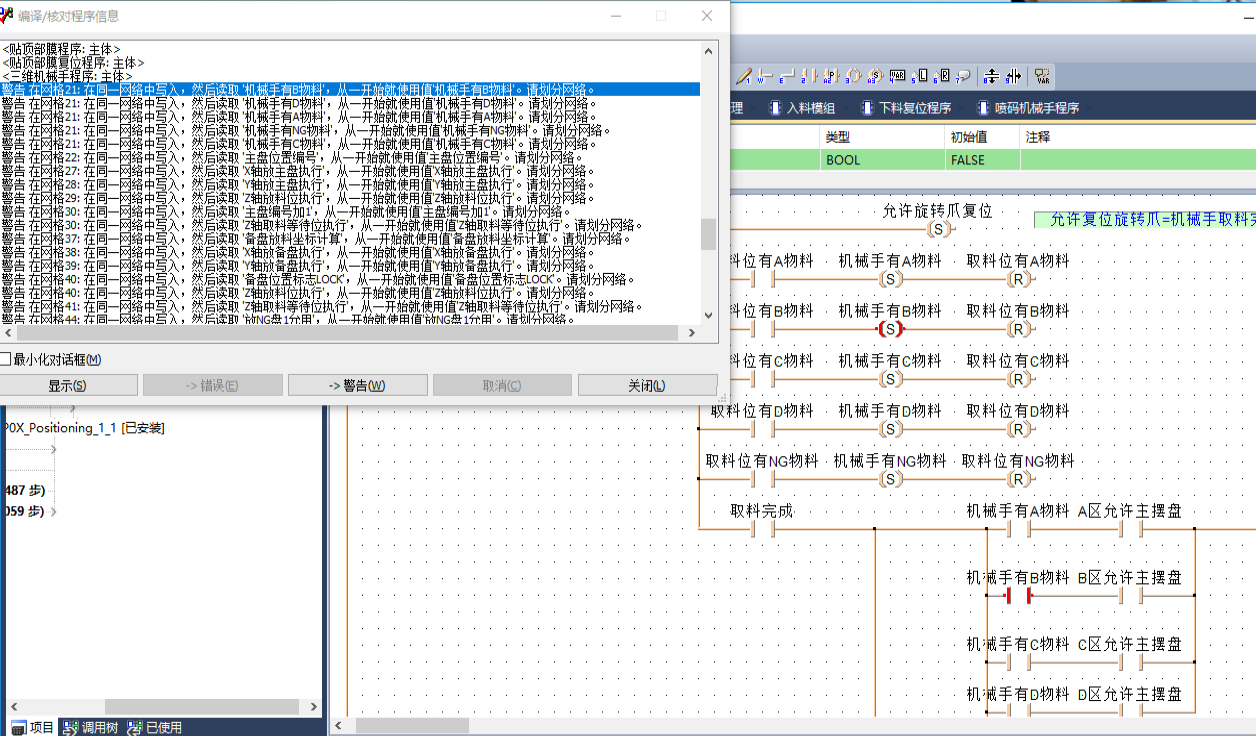 這個只是在同一個網(wǎng)絡(luò)里重復(fù)出現(xiàn)同一個變量的警告而已,有些PLC在同一個程序塊中多次重復(fù)出現(xiàn)同一個變量都會有類似的警告呢。
