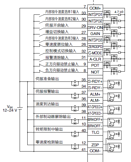 伺服的輸入信號用繼電器轉一下,輸出信號接的時候“-”端接PLC輸入、“+”端接DC24V,伺服的輸出都是無源觸點,如果PLC的輸入端是NPN的,則把“+”接到PLC上,“-”接到DC0V上,如果PLC的輸入是PNP的,就是“-”接PLC、“+”接DC24V