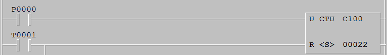p00計數(shù)輸入   t001復(fù)位   c100計數(shù)22個輸出